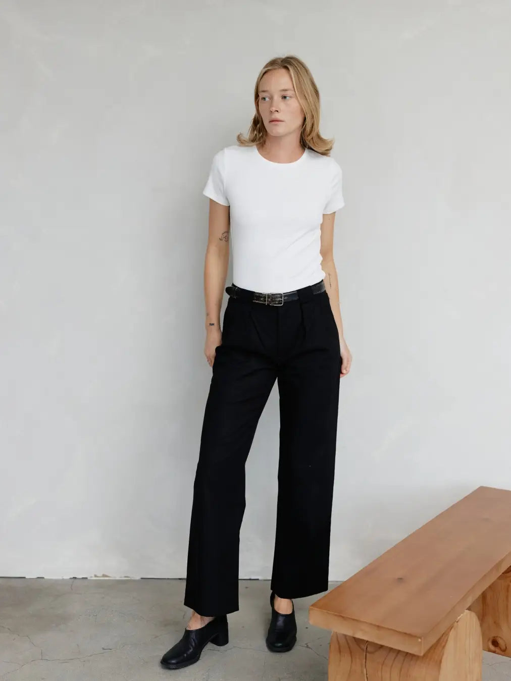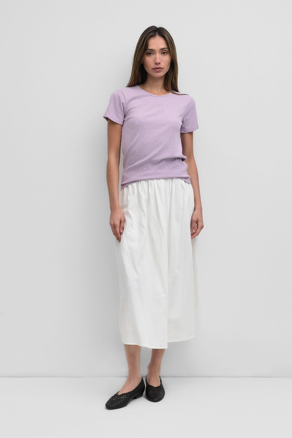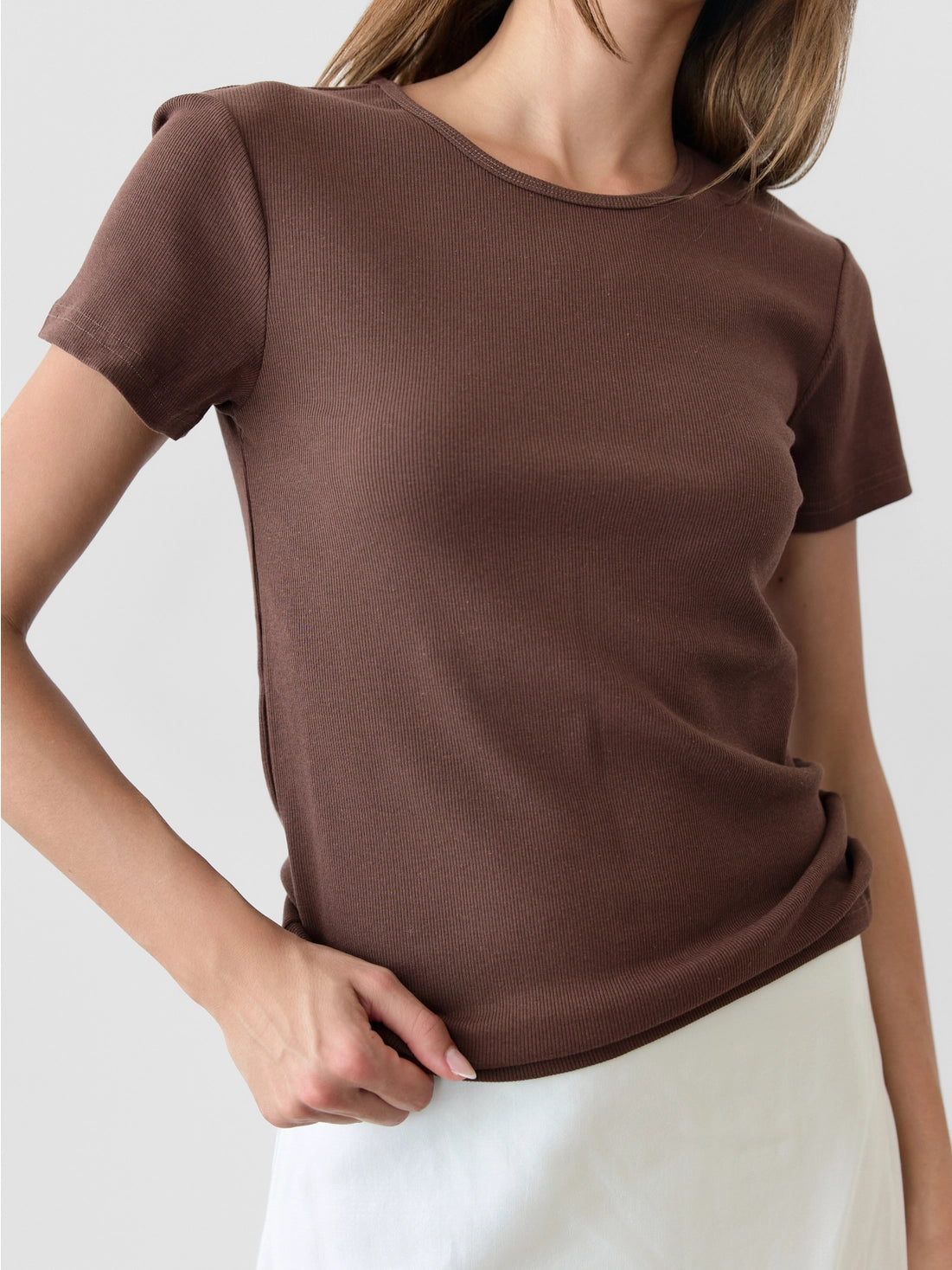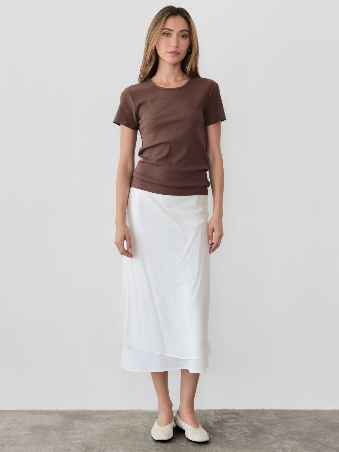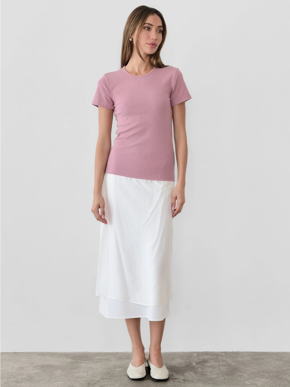 The Reese Top is a ribbed tee that offers style without compromising comfort. It is fabricated from a cotton-rayon blend with a hint of spandex for a stretchy fit that complements any figure. This top is a timeless wardrobe staple that will take you from season to season.
