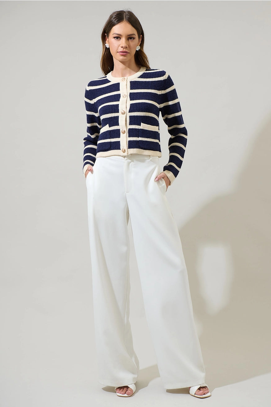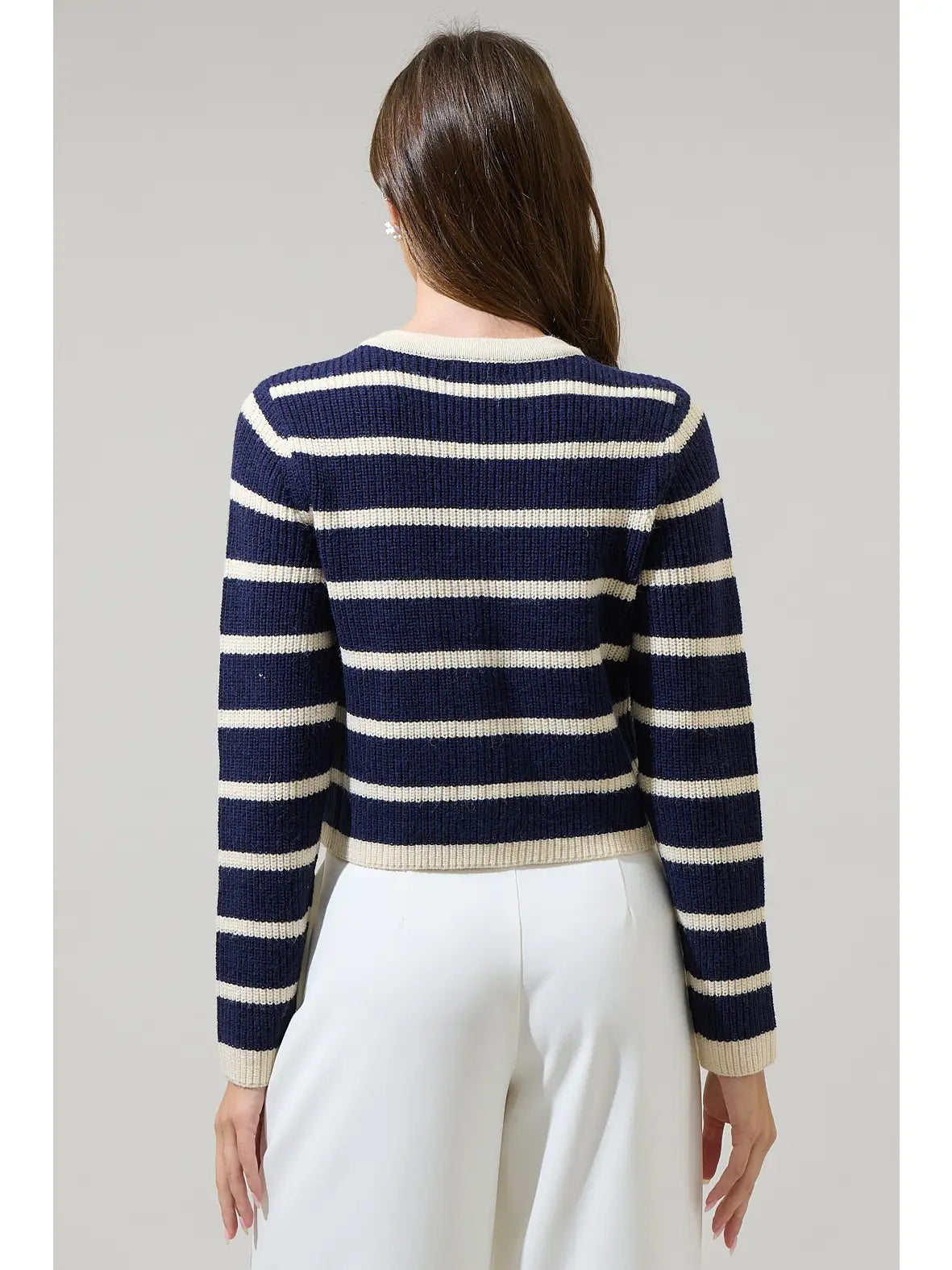 Finish your outfit off with a cute touch like the Kassidy Striped Cropped Cardigan. This stripped cropped cardigan features a round neck and long sleeves with a cropped fit. It has a functional button front with gold buttons. Wear it over a fitted top or over a dress that can use some subtle bling